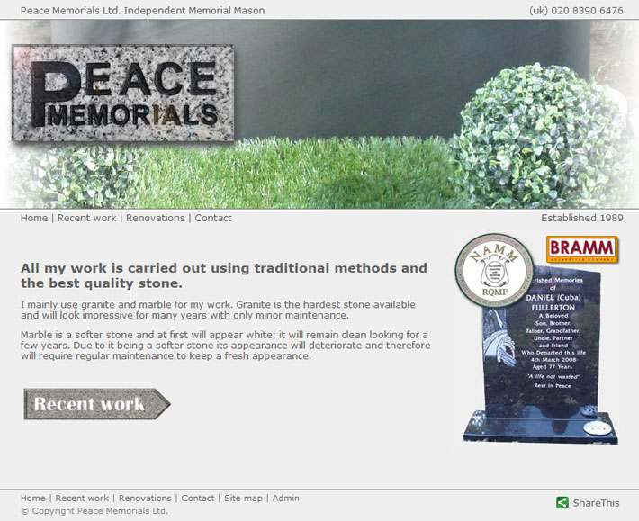 This site is for an independent memorial mason. I was approached as the company wanted to create a web presence for themselves. They wanted lots of visual evidence of their work on the site, so I combined PHP with flash to suit their brief and allow both myself and the client to easily upload content and new images.